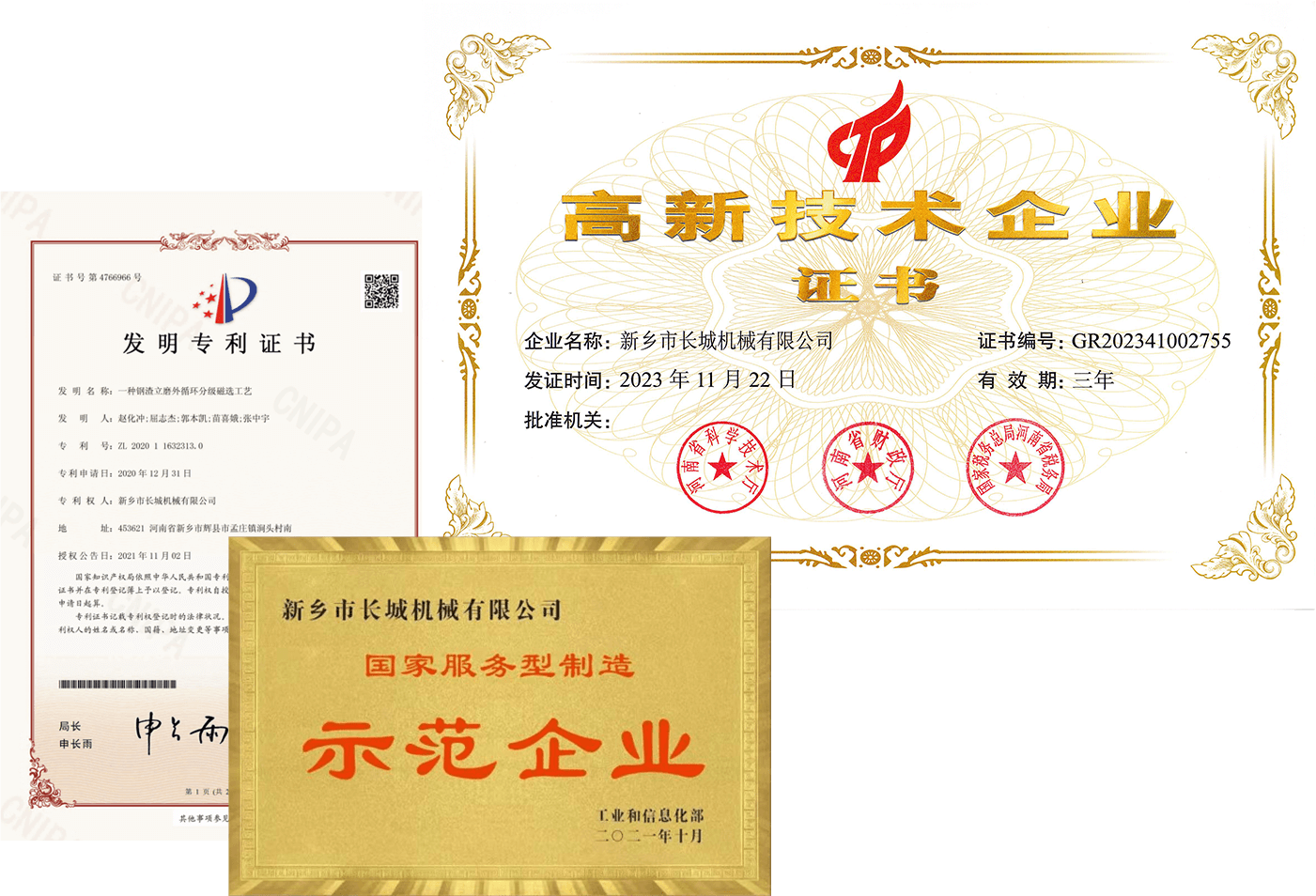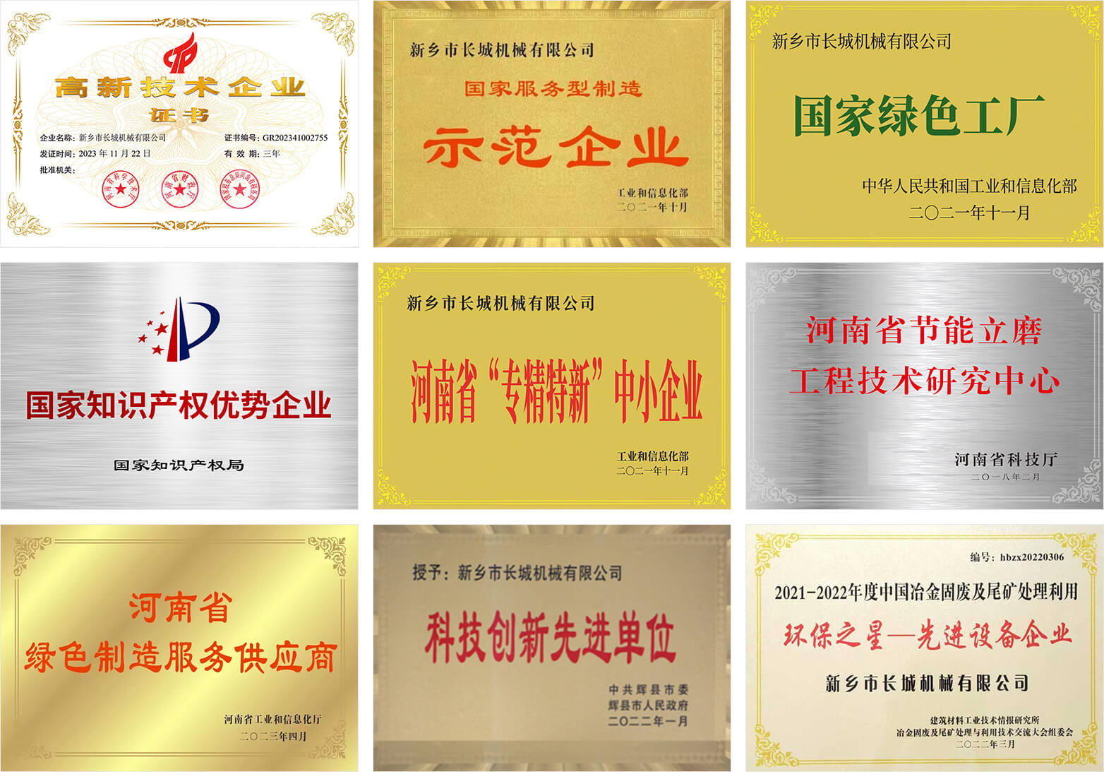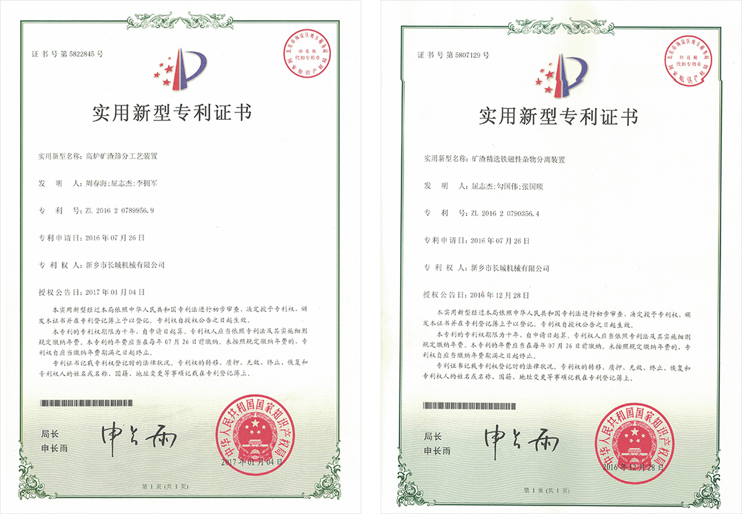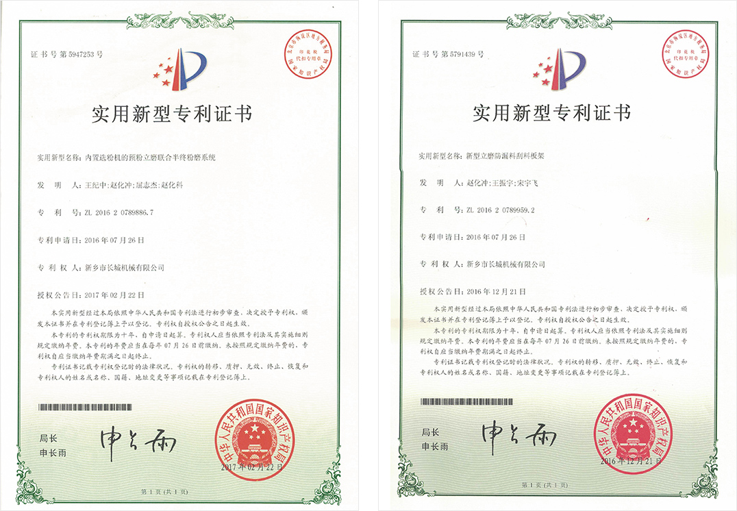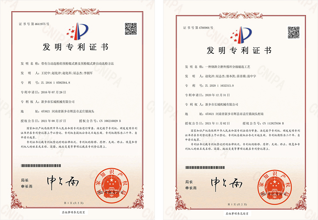 新鄉長城憑借豐富的生產經驗、先進的生產工藝和科學的管理體系,推動企業管理和技術創新,公司取得了發明專利2項,實用新型專利100余項,軟著權4項,60余年品牌知名度和美譽度不斷提升,礦渣立磨市場占有率穩居前列。