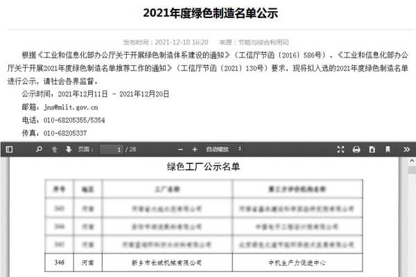 12月,公司成功入選國(guó)家工信部綠色工廠公示名單。